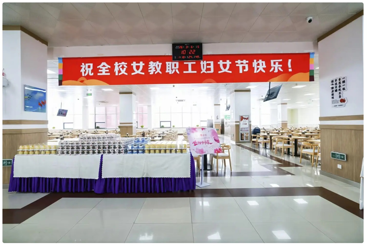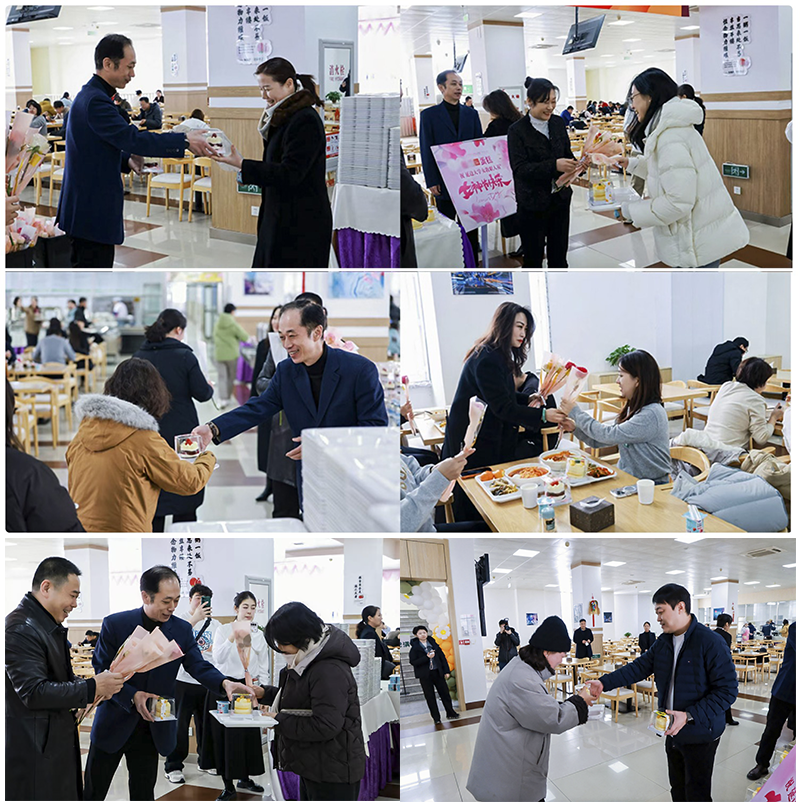 午餐时间,教工食堂内暖意融融。工会与后勤保障处的工作人员早早守候在窗口前,将精心准备的一份份精致小蛋糕送到每一位前来就餐的女教职工手中。接过蛋糕的女教师们脸上洋溢着惊喜与笑容,现场气氛温馨而欢快。