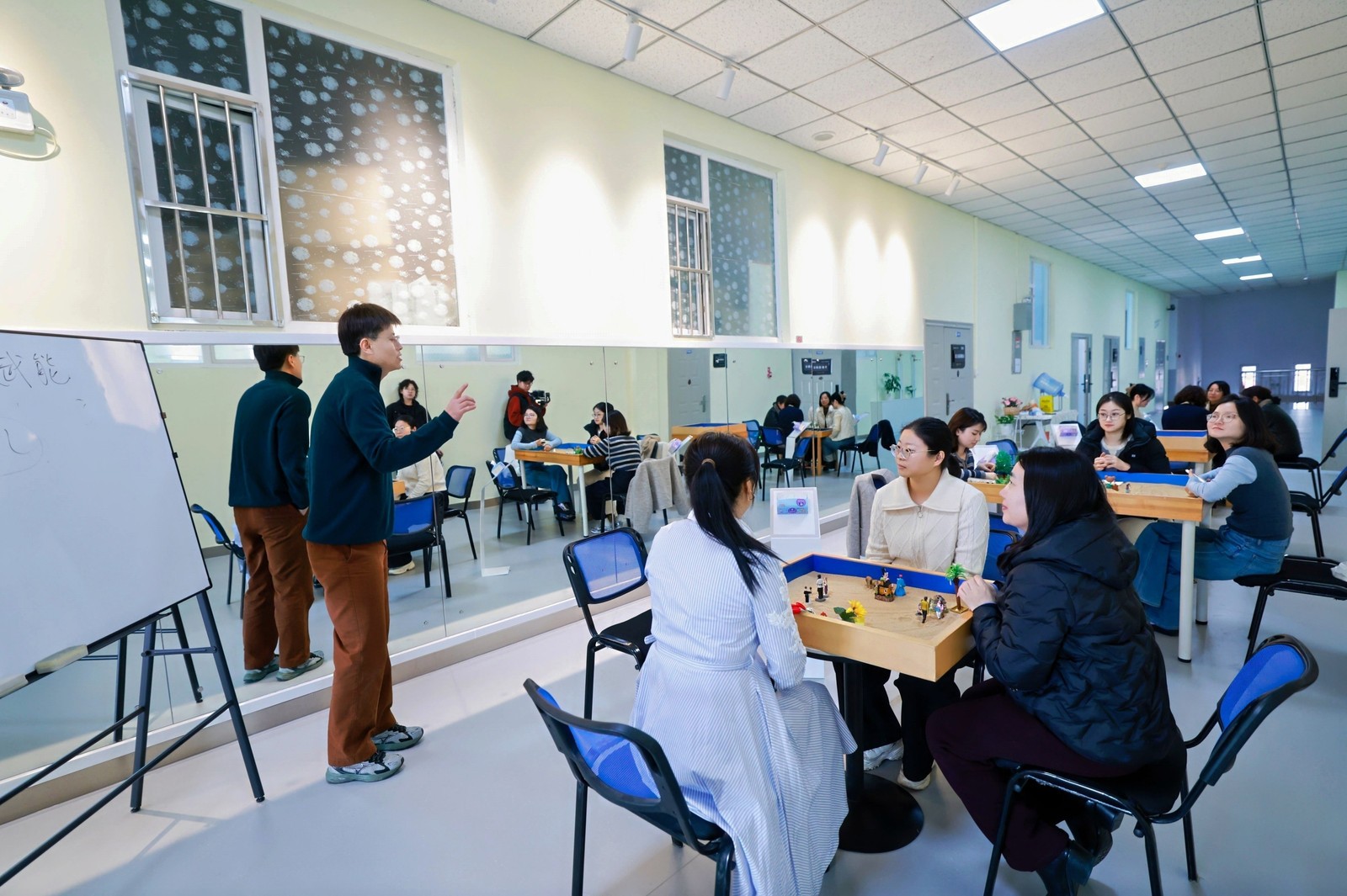 本次团体沙盘辅导活动,通过扫码报名的方式招募,于 3 月 11 日下午 2 点在学校二食堂 305 开展,由具备丰富团体沙盘辅导经验的专业导师林春国全程带领。活动围绕心理减压、自我探索、团队凝聚、节日赋能四大核心目的展开,不仅帮助女教职工释放负面情绪、掌握实用心理调适技巧,更引导大家通过沙具摆放与场景构建,觉察自我需求、提升情绪管理能力;同时,活动打破了学科与部门的壁垒,让女教职工在互动中增进理解、凝聚共识,进一步增强了集体归属感与团队向心力。